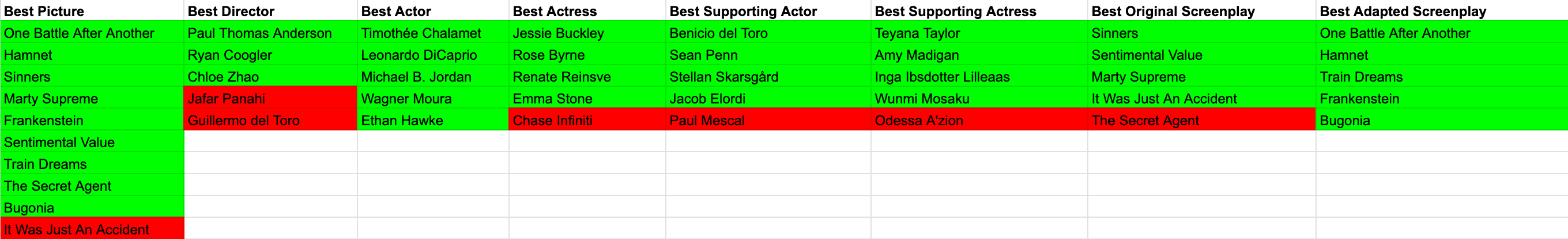 Oh, also, in case you’re wondering (and I’m betting you are), here’s how I did with my predictions in the eight major categories: